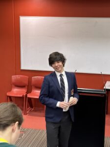 Rhetorical questions helped Augus deliver his impromptu speech. Looking at the topic with a metaphoric approach, Angus pushed his points using the repetition of ideas to help explain why ‘the price isn’t always right.’ Angus was well paused and clear with his projection.